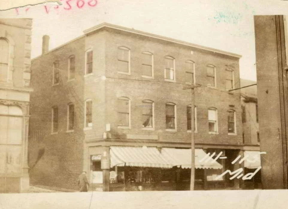 In 1911, Russian Jewish immigrant Abraham Robinson purchased the property on Middle Street after building his business from a roadside cart. At the time, the lot contained a one-story wood commercial building, a duplex tenement, and a brick house. In 1914, Robinson constructed the current commercial block to house his clothing store on the first floor, flanked by a grocery store and drug store. The upper floors included factory space and a social hall, known as Robinson’s Hall. The hall hosted dances and meetings of labor organizations like the Hod Carriers and Building Laborers #12 and the Portland Lodge of the Jewish organization B’nai B’rith. The upper stories were later adapted for manufacturing and continued this use until Robinson lost the property during the Great Depression. Myer and Esther Goldberg purchased and operated Model Foods Importers & Market on the first floor, importing foreign foods from around the world to Portland. East Brown Cow acquired the property from the Goldbergs in 1998, reactivating the unused upper floors as office space.