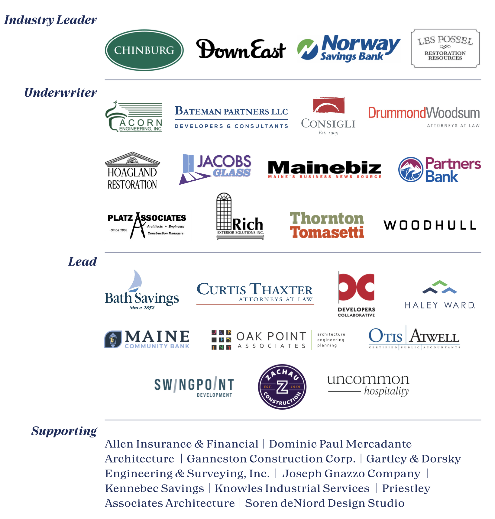 The annual Maine Preservation Honor Awards have celebrated excellence in historic preservation since 1998, focusing on the transformative rehabilitation of historic buildings and the people that make those projects possible. We also want to recognize the grassroots efforts of folks advocating for important places in their communities, the creative activation of underused open spaces, the long haulers who steward historic buildings across the state, and the legacy businesses that serve as cornerstones of our downtowns. It is through these projects and people that the cultural and economic vitality of Maine is strengthened for the future.